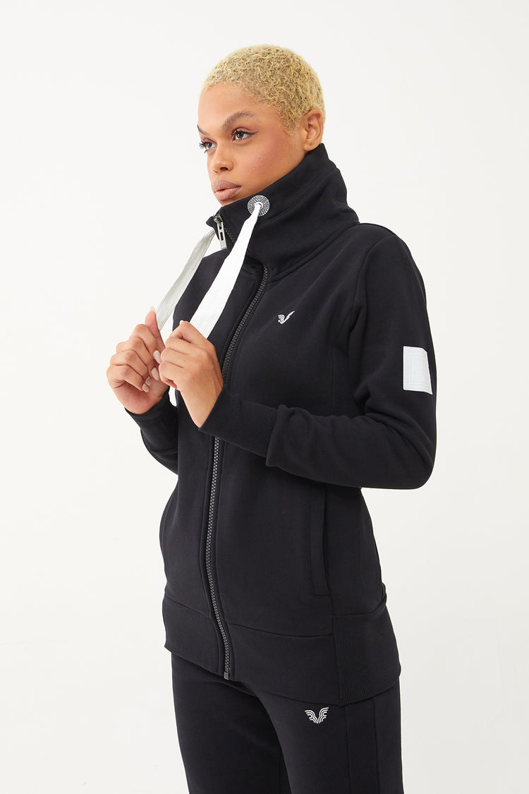 - Full-length front zip and ribbed hem and cuff details for a modern look