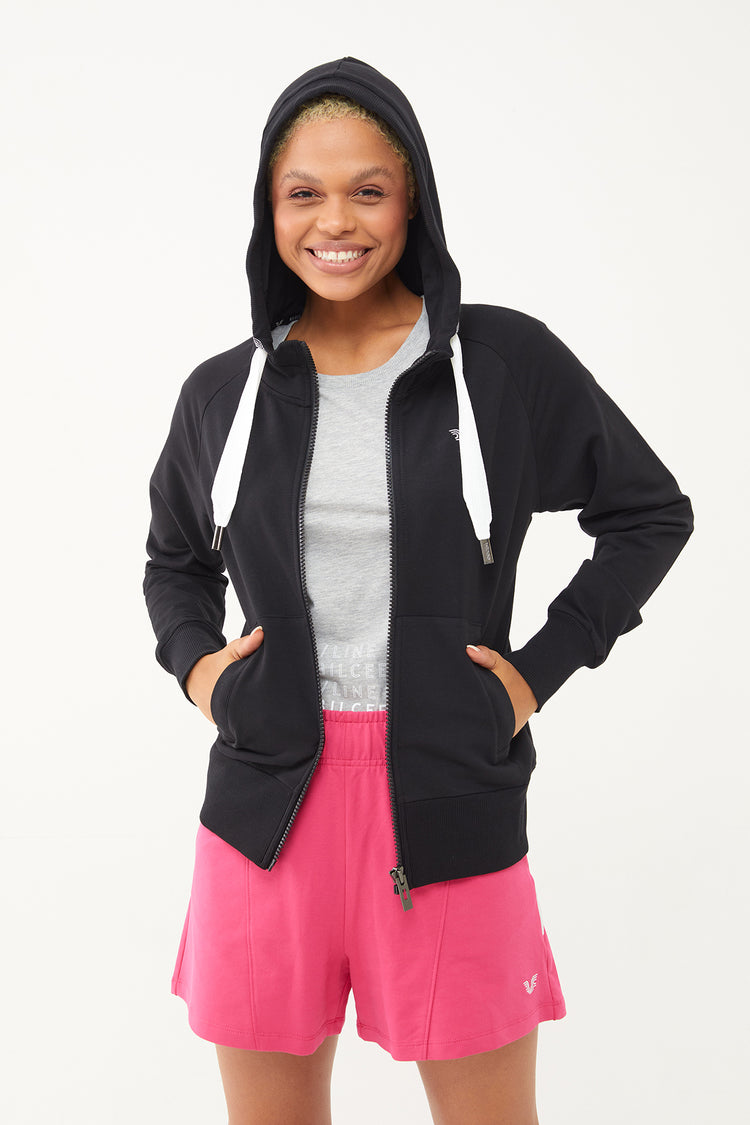 • Full-length front zip and ribbed hem and cuff details for a modern look