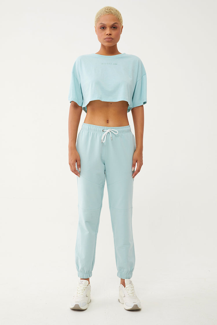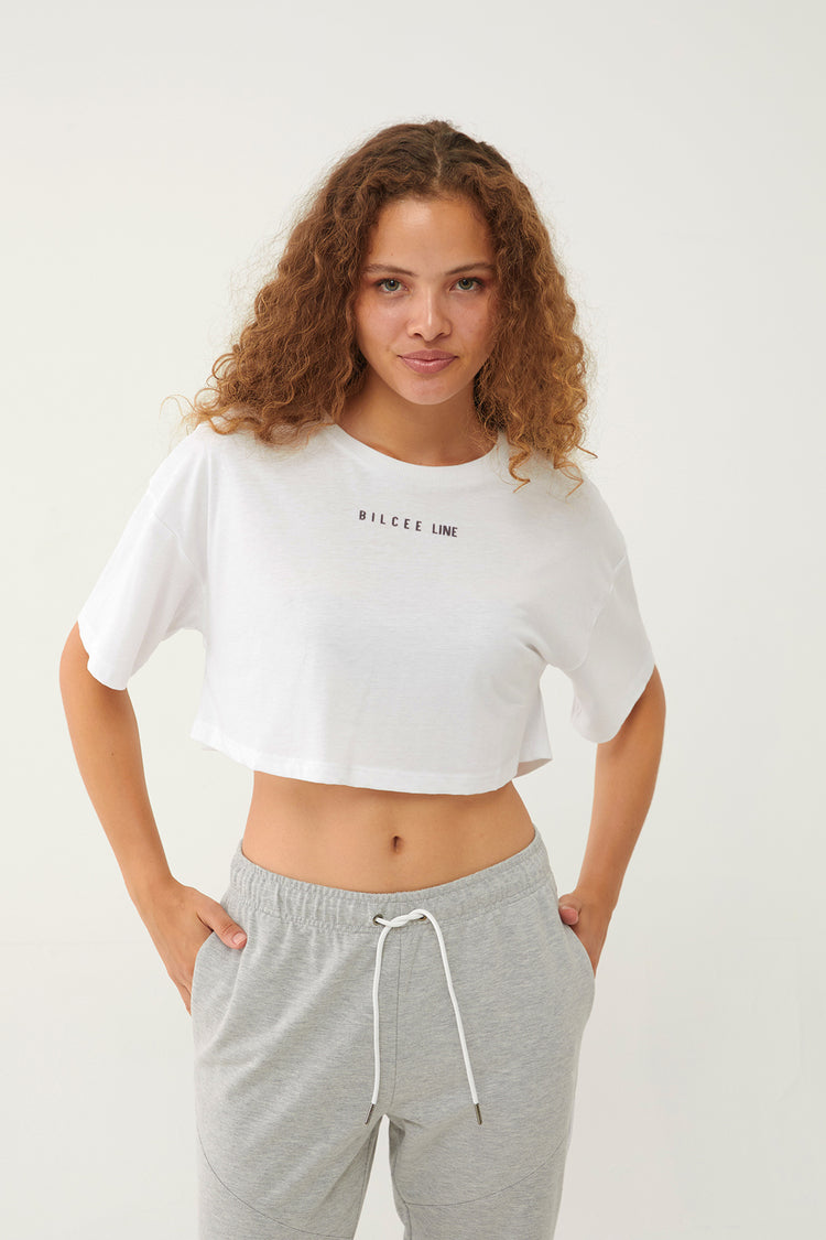 The off-shoulder, loose-fitting, cropped Bilcee line T-shirt offers comfort all day long.